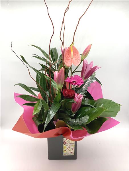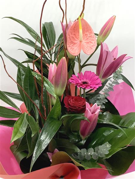 Including one luxury red rose, elegant lilies and anthurium.