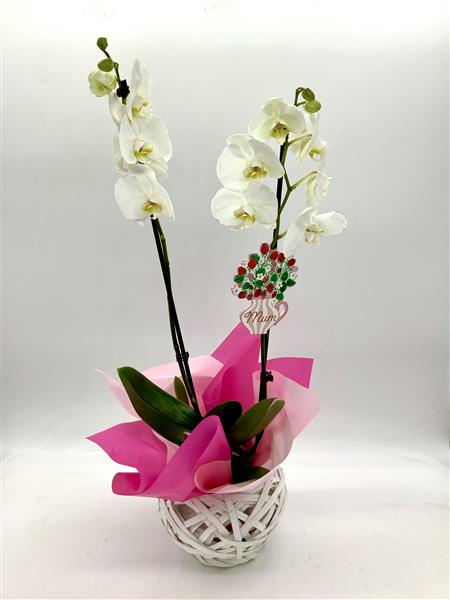 A timeless phalaenopsis orchid for Mum, complete with a Gisela Graham Mum decoration.