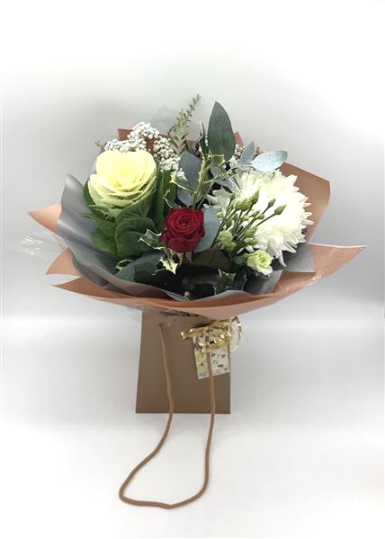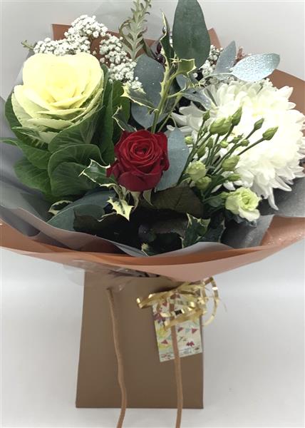 Winter whites and festive colours for our gorgeous traditional Christmas bouquet.